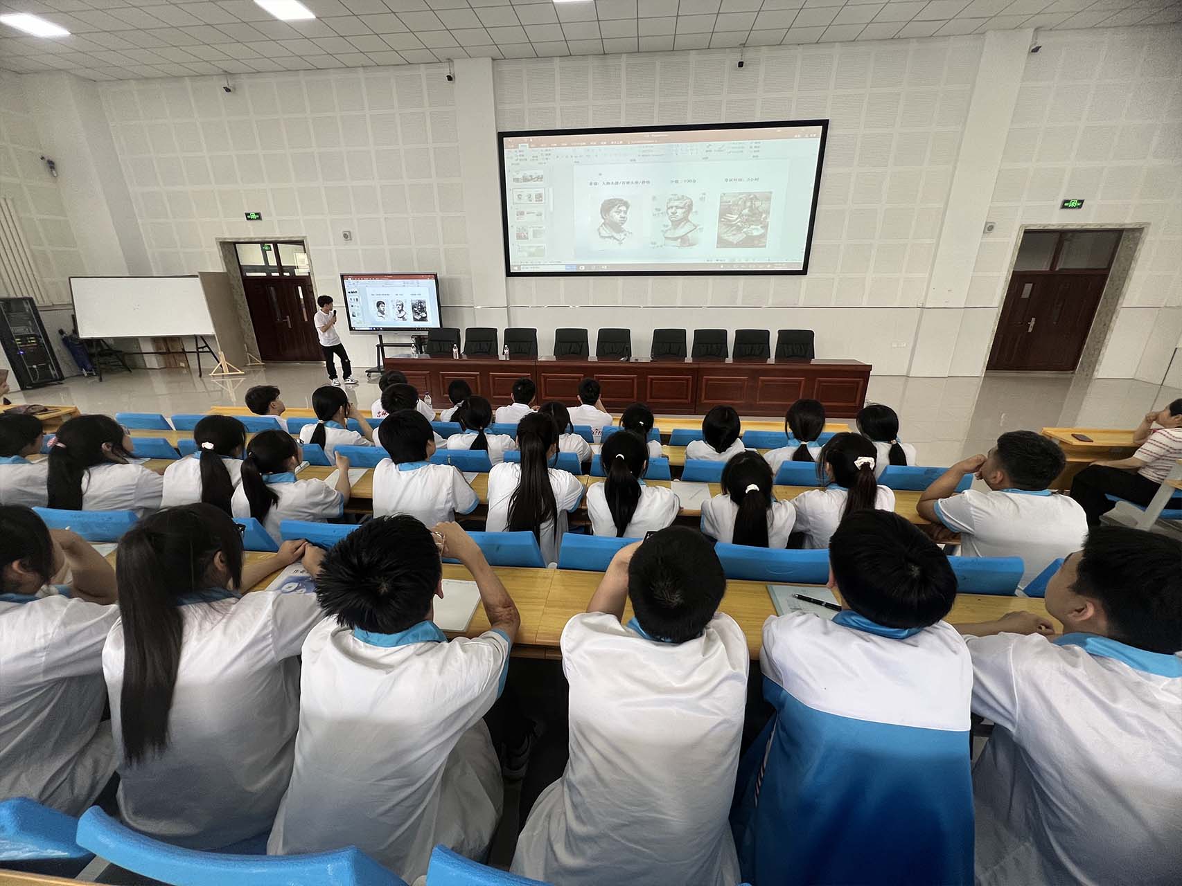 7月2日下午,由白青辰、王小源、李苏成组成的高中美术组,由张玏、崔一帆、吴浩然、客华君组成的高中音乐组前往通榆县实验中学开展高中组教学活动。活动中,团队成员向在场学生讲授了艺术类专业考试相关常识,包括音乐、美术学科的基础理论、演练技巧及考试注意事项。参与同学们认真学习,积极提问,面对重点内容,同学们认真记录。在互动环节,学生们纷纷举手,提出了一系列关于艺术联考备考、个人艺术发展方向等问题,志愿者们耐心细致地一一作答。通过交流,大家对于音乐、美术联考的信息有了较为深入的理解。