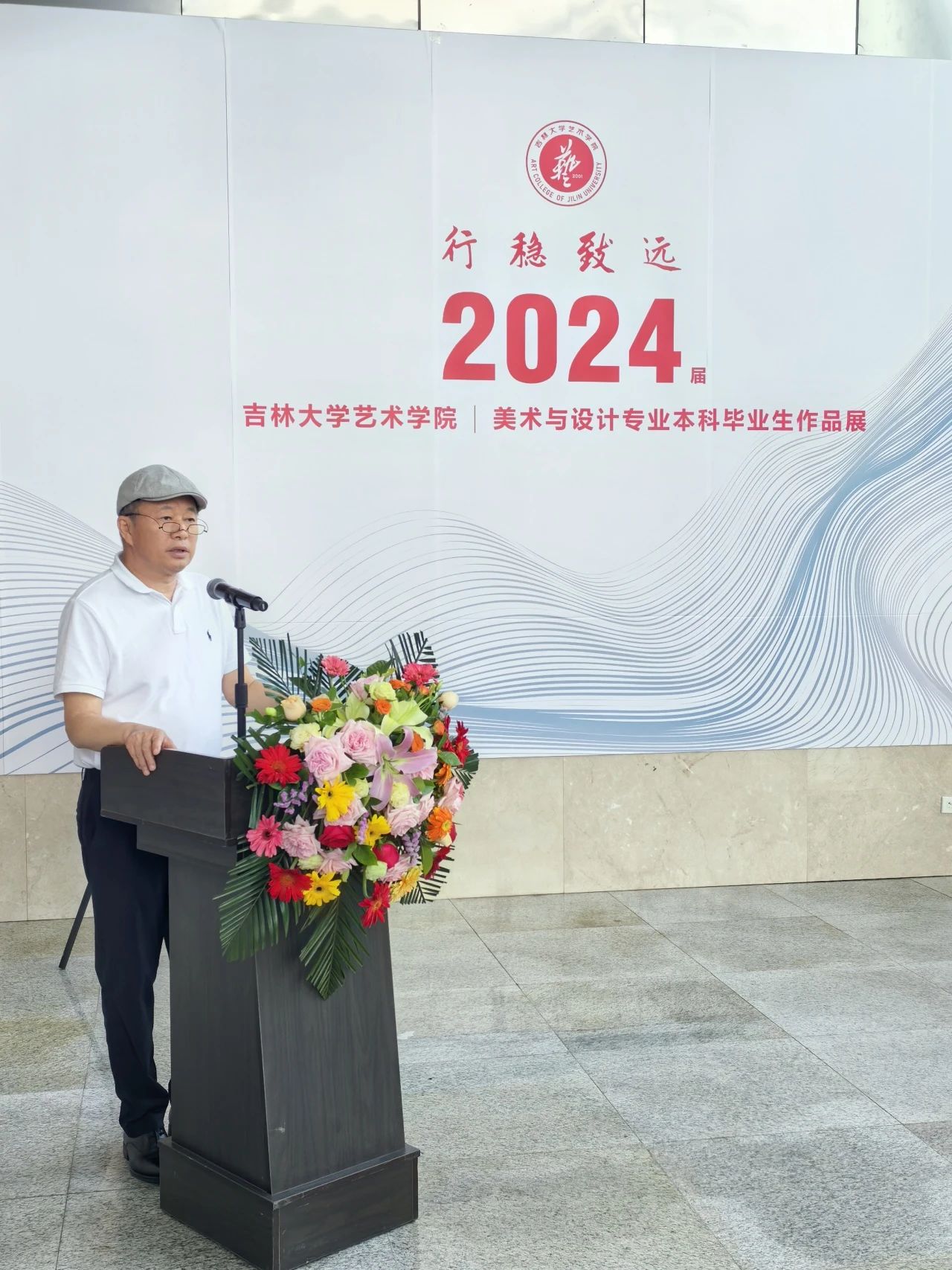 郭春方在致辞中表示,本次作品展既是同学们四年艺术学习的总结,也是学院本科教学成果的检验,不仅具有较强的艺术价值,更体现了学生们对生命、自然、人类以及未来的深刻理解和尊重,希望即将毕业的同学们在未来的工作中保持艺术的创新精神、再创佳绩。