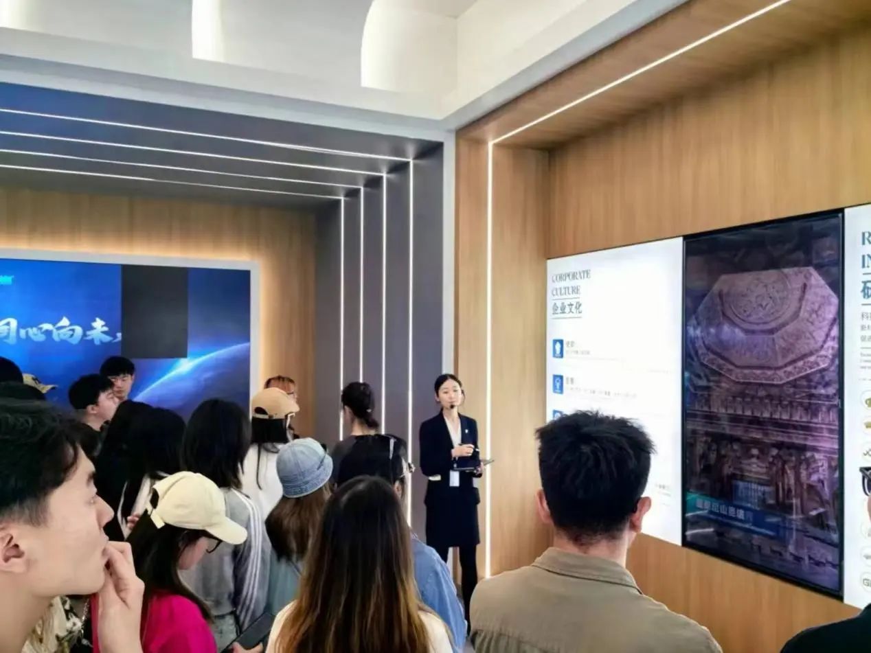 设计系2021级学生(含设计大师梦工场学员)在教师的带领下来到苏州金螳螂建筑装饰股份有限公司总部。踏入苏州金螳螂公司的大门,同学们就被那种专业、现代化的氛围所震撼。公司里每一个角落都充满了设计感和艺术气息。前台的接待人员热情带领我们参观了公司的展厅。展厅里展示了各种令人惊叹的设计作品,从豪华酒店到高端住宅,每一个细节都体现了金螳螂公司卓越的设计能力和精湛的工艺。