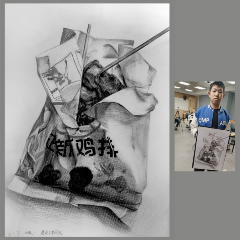 以“发挥美术铸魂育人功能,创作实践收获审美体验”为主旨,来自法学院、行政学院、化学学院、商学院、计算机科学与技术学院、植物科学学院、电子科学与工程学院等多个学院不同专业学生参与本次课程。经过一个学期的理论学习与专业训练,学生们的素描作品质量得到提高,具备一些可欣赏属性。
