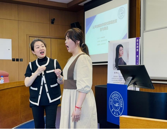 李梶瑄教授从专业的解剖学角度出发,深入浅出地为大家剖析了歌唱中涉及的各个重要器官,包括鼻腔、口腔、咽腔、肺、横膈膜以及呼吸道等。她逐一阐述了这些器官在歌唱过程中的关键作用,并详细讲解了如何巧妙地运用它们,以实现最佳的演唱效果。通过生动的实例展示和专业的示范演唱,让在场的师生们深刻领悟到了声乐歌唱的精髓与技巧。