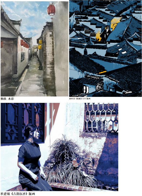 宏村及其周边的名胜古迹,如南屏古树、守拙园、九龙瀑、秀里景区、唐模、卢村、 西递乃至远至景德镇,无一不给师生留下深刻印象。其中,宏村的传统徽派建筑尤为引 人注目。承志堂、敬修堂的精细木雕,东贤堂、三立堂的大气磅礴,无不展现出徽州建 筑的独特魅力和深厚的历史积淀,成为师生们笔下最生动的画面。