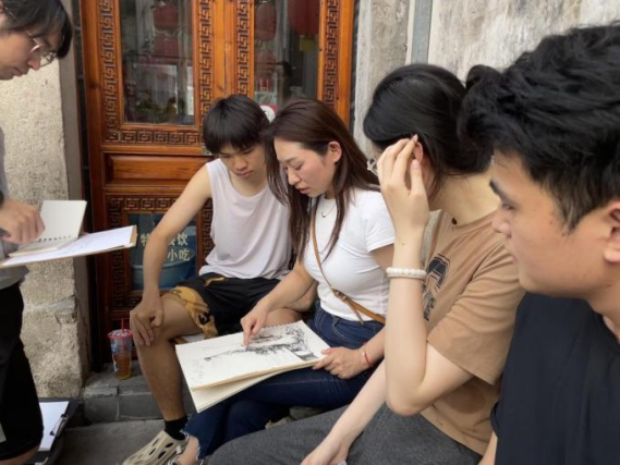在这次宏村之行中,老师分别开展讲座课程,结合自身专长,讲解了如何观察自然 和构图归纳,如何观察自然之美,绘画的作用以及激发内在情感的表达等。这些讲解不 仅为学生们提供了宝贵的创作指导,也激发了他们对艺术创作的热爱和追求。在考察期 间,各专业的带队教师结合自己本专业课程特色进行一对一的引导和指导写生创作。同 时,在考察结束之际,师生们举行考察写生总结交流会,细致剖析每幅作品,从画面结 构到色彩运用,给予学生个性化指导,帮助他们在艺术道路上更进一步。