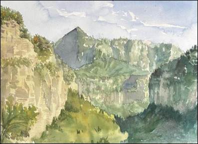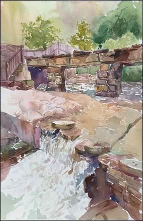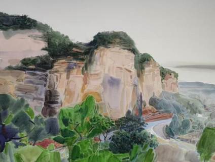 水彩创作以水色淋漓、透明层叠的特点,生动再现了太行山区雨雾朦胧的湿润氛围与溪流石壁的清澈质感,展现了Javbooks