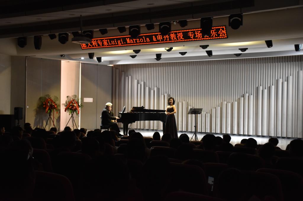 本场音乐会中,远道而来的Luigi.Marzola老师和申丹老师为我们展现了专业而精湛的演奏,为我们诠释了音乐的浪漫情怀,书写了音乐与青春的乐章,给我们带来了一场视听盛宴。本次活动的成功举办,得益于学校领导、学院老师、同学们的大力支持。丰富了我院学生的校园文化生活,为我院推进校园文化的建设奠定了良好的基础。