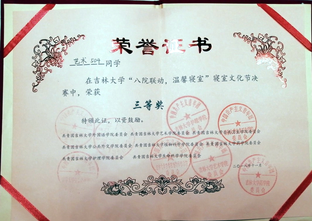 与外国语学院、公共卫生学院、公共外交学院、植物科学学院、药学院、护理学院和生命科学学院联合举办了“八院联动,温馨寝室”--寝室文化节。来自中心、和平、新民三个校区,来自8个学院的近600名同学参加了本次活动。11月17日晚,寝室文化节决赛在外语楼500报告厅举办。决赛评委由八个学院的学生会主席团成员担任。
