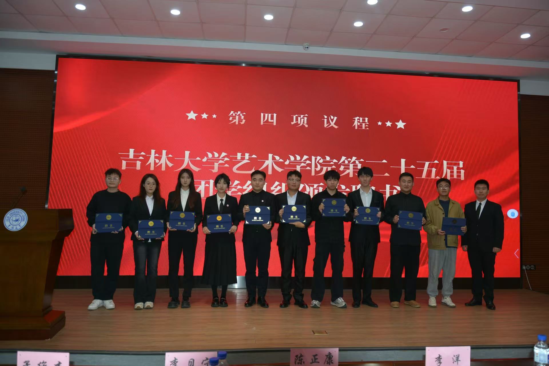 李洋老师向第二十五届团学组织学生干部颁发聘书,并对大家一年来所做出的贡献表示感谢。