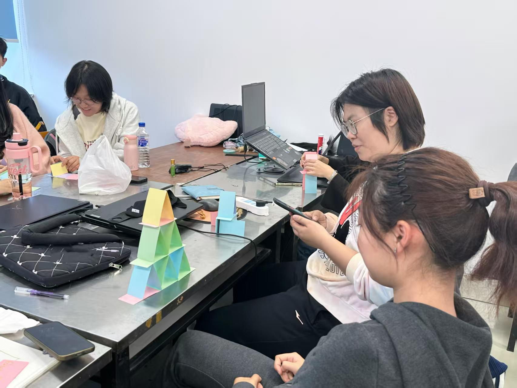 “同舟共济”与“众志成城”环节则聚焦团队协作能力的培养。在“同舟共济”中,各小组需在限定空间内思考“如何让所有成员站稳”,从最初的无序尝试到后来的分工配合,新生们在讨论与实践中学会倾听他人意见、凝聚集体智慧;“众志成城”环节里,小组需用指定数量的卡片搭建“高塔”,从设计结构到分工搭建,再到共同守护塔身不倒塌,每一步都考验着团队的耐心与协作,不少小组在搭建成功后兴奋地合影留念,集体荣誉感在这一刻悄然萌芽。