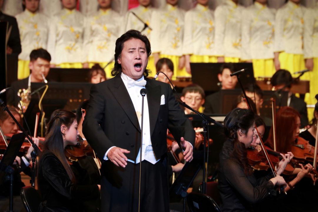 音乐会在恢弘澎湃的《第一交响序曲》中拉开帷幕,丰富的配器和声、波澜起伏的节奏,描绘出一幅革命先辈们前赴后继、波澜壮阔的历史画卷。由李鸿独唱的歌曲《为艺术,为爱情》感情强烈而深厚,《晴朗的一天》旋律舒缓而甜美。《小嘴巴》《我的太阳》等歌曲在戴玉强的演绎下,让现场观众在感动中沉浸于美妙的歌声里。戴梓伊演唱的歌剧《西西里晚祷》选段《多谢好朋友》,激情富有节奏感的演唱,赢得观众的阵阵掌声。《喀秋莎》《红莓花儿开》《卡林卡》等民歌名曲联唱将音乐会推向高潮。当《我和我的祖国》旋律响起,全场观众起立与台上演员一同歌唱,音乐会圆满落下帷幕。