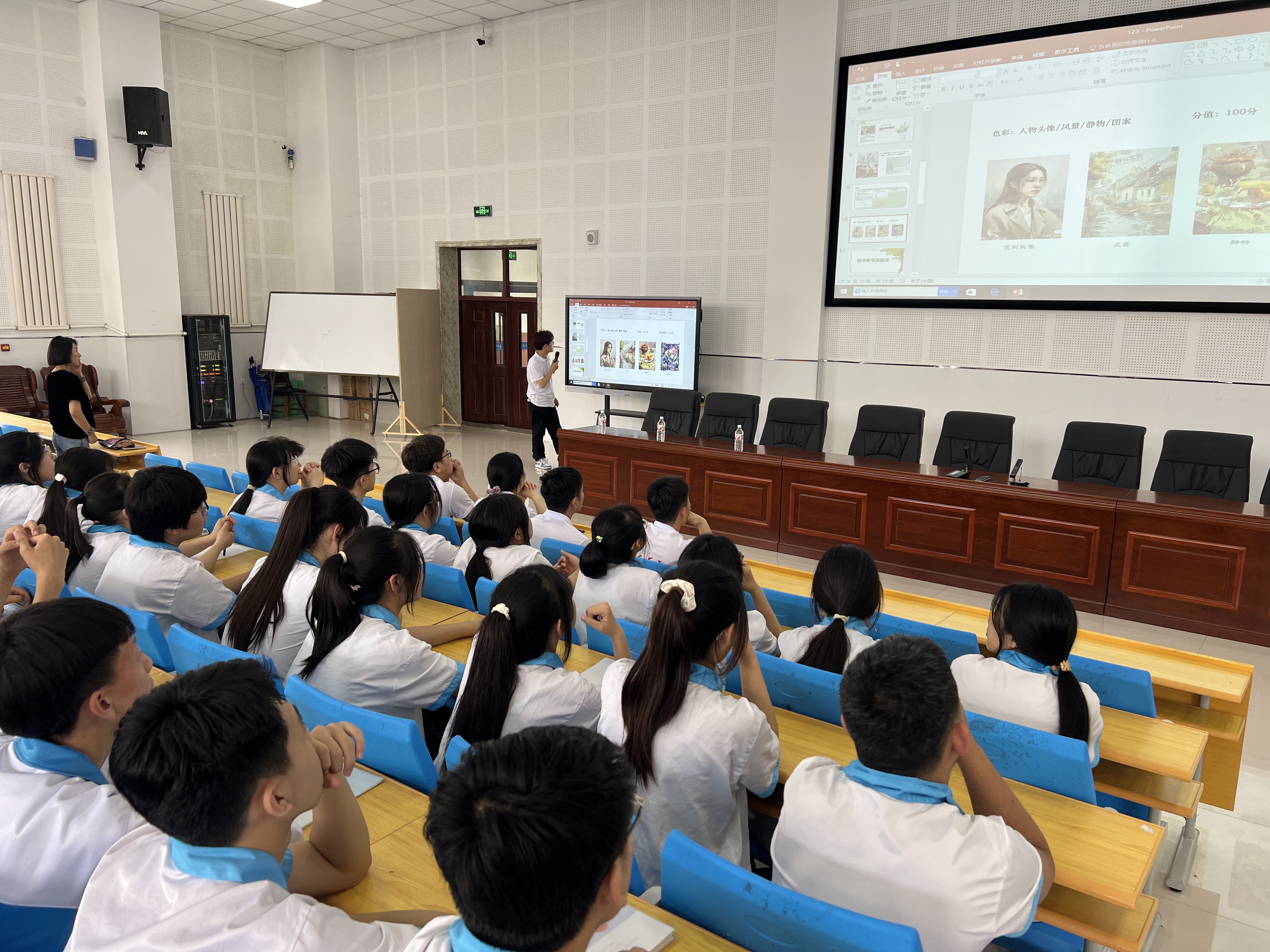 7月2日下午,由白青辰、王小源、李苏成组成的高中美术组,由张玏、崔一帆、吴浩然、客华君组成的高中音乐组前往通榆县实验中学开展高中组教学活动。活动中,团队成员向在场学生讲授了艺术类专业考试相关常识,包括音乐、美术学科的基础理论、演练技巧及考试注意事项。参与同学们认真学习,积极提问,面对重点内容,同学们认真记录。在互动环节,学生们纷纷举手,提出了一系列关于艺术联考备考、个人艺术发展方向等问题,志愿者们耐心细致地一一作答。通过交流,大家对于音乐、美术联考的信息有了较为深入的理解。