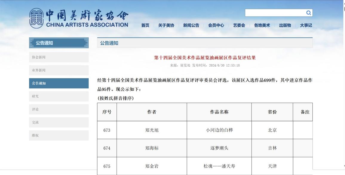 近日,中国美术家协会官网公布了第十四届全国美术作品展览作品复评的结果。Javbooks