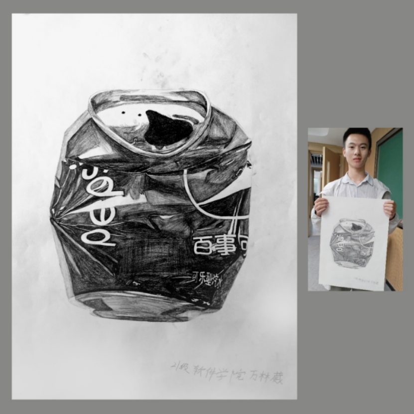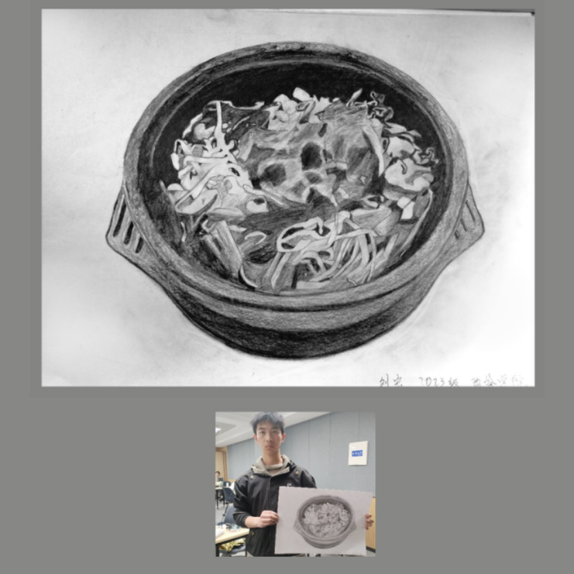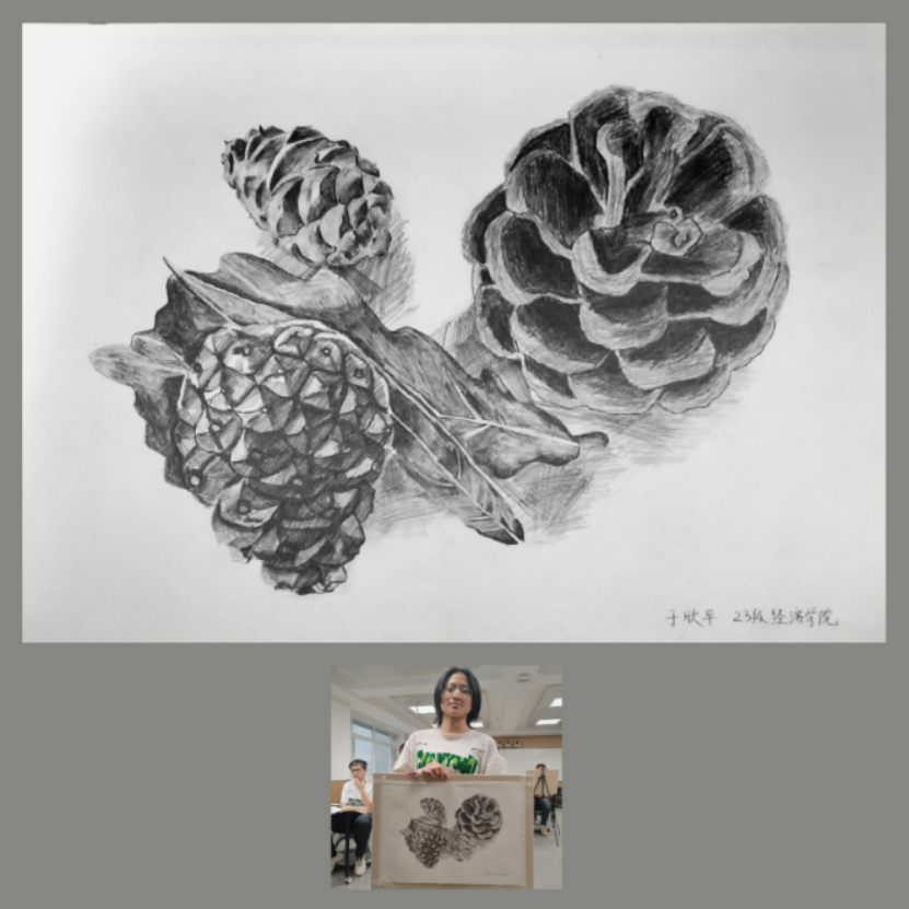 以“发挥美术铸魂育人功能,创作实践收获审美体验”为主旨,来自法学院、行政学院、化学学院、商学院、计算机科学与技术学院、植物科学学院、电子科学与工程学院等多个学院不同专业学生参与本次课程。经过一个学期的理论学习与专业训练,学生们的素描作品质量得到提高,具备一些可欣赏属性。