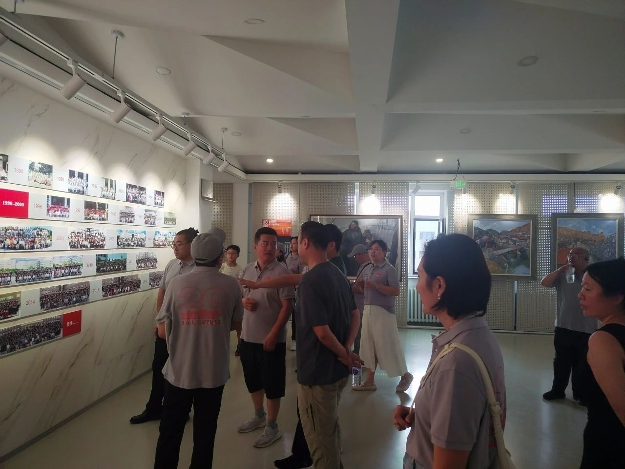 下午,校友们漫步母校,再一次零距离感受母校深厚的历史底蕴和文化氛围。萃文楼内,校友们在校友墙前观看学院成立以来历届本科生的毕业合影,并参观画室,欣赏师生作品,重温当年学习场景,对比学院的旧貌新颜,切实感受学院的变化,为学院的蓬勃发展感到由衷的欣慰和自豪。