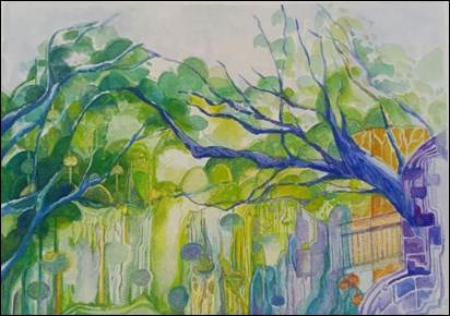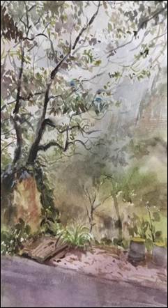 水彩创作以水色淋漓、透明层叠的特点,生动再现了太行山区雨雾朦胧的湿润氛围与溪流石壁的清澈质感,展现了Javbooks