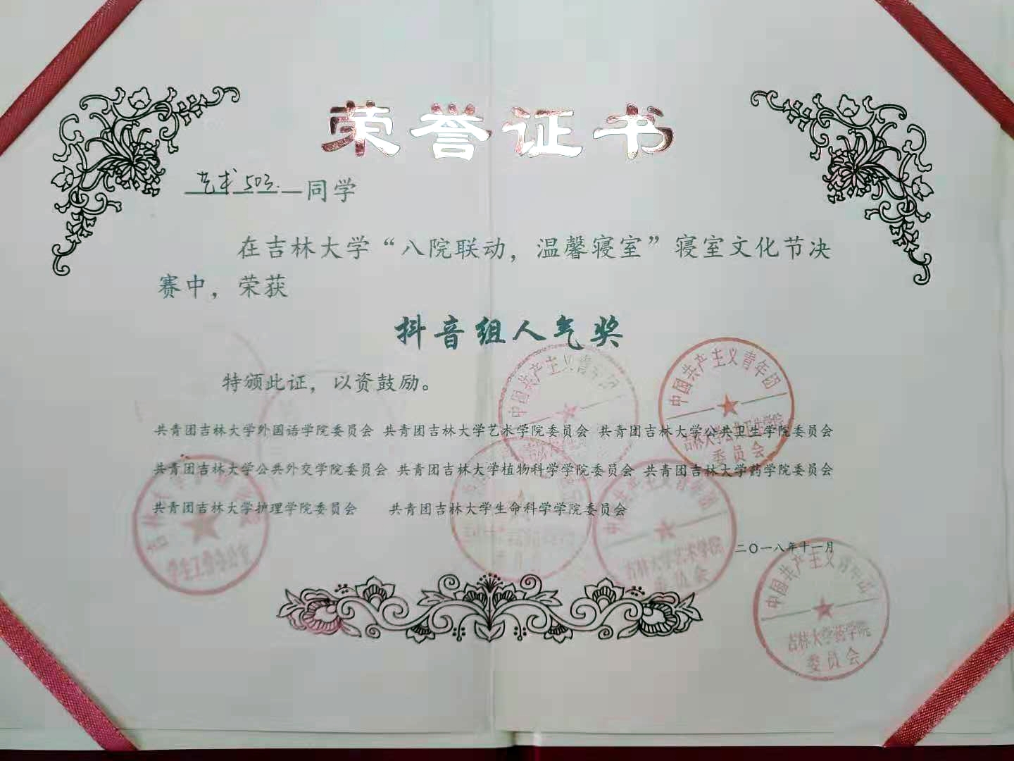 与外国语学院、公共卫生学院、公共外交学院、植物科学学院、药学院、护理学院和生命科学学院联合举办了“八院联动,温馨寝室”--寝室文化节。来自中心、和平、新民三个校区,来自8个学院的近600名同学参加了本次活动。11月17日晚,寝室文化节决赛在外语楼500报告厅举办。决赛评委由八个学院的学生会主席团成员担任。